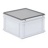 Coperchio con cerniere, PP, grigio argento RAL 7001, esterno 400x400x28 mm, con chiusure a scatto, per RAKO 400x400 mm