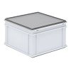 Coperchio con ganci, PP, grigio argento RAL 7001, esterno 400x400x28 mm, con chiusure a scatto, per RAKO 400x400 mm